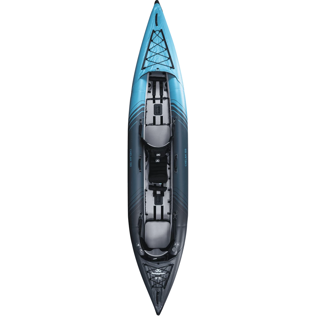 A true tandem inflatable kayak for performance touring, the Chelan 155 is optimized for hull speed and paddling efficiency that can be used as a solo boat, for two adults plus gear, or with a child or pet. The unique combination of rugged Duratex™ tube construction with a drop-stitch, hard-bottom floor results in a rigid and responsive open cockpit inflatable kayak. The rocker lines of the Chelan 155 have been carefully designed for optimal touring performance, and features such as enhanced gear storage and customization options make this boat a favorite. Compact enough for easy storage and transportation, the Chelan 155 is a true tandem kayak ideal for performance touring and expeditions.